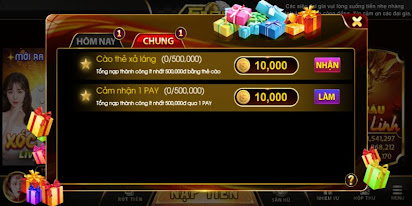 • Nhiệm vụ cược mỗi ngày: Ngoài phần quà chào mừng, bạn có thể lấy thưởng từ nhiệm vụ cược mỗi ngày. Trong khuôn khổ chương trình, anh em chỉ cần đầu tư từ 200k trở lên ở bất kỳ cho chơi nào là sẽ được lãnh quà.