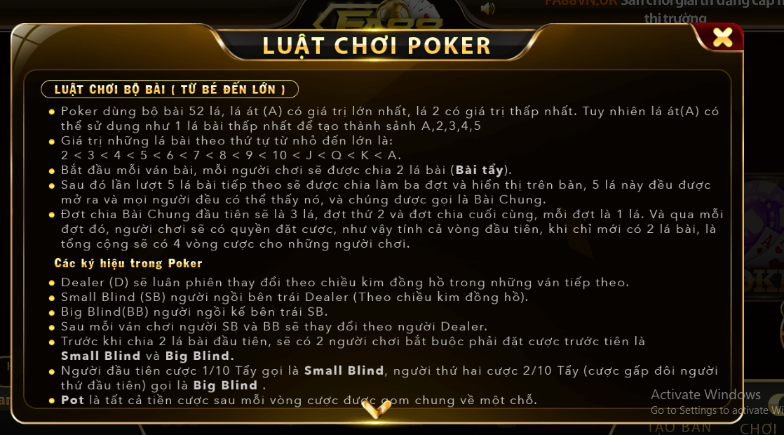 FA88 Hướng dẫn chơi bài Poker chi tiết dành cho Newbie